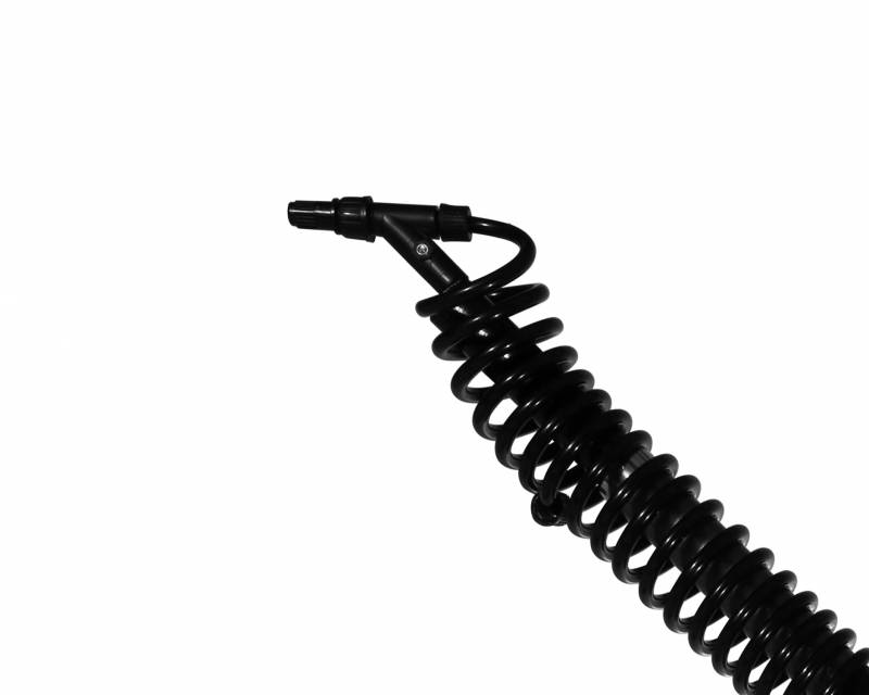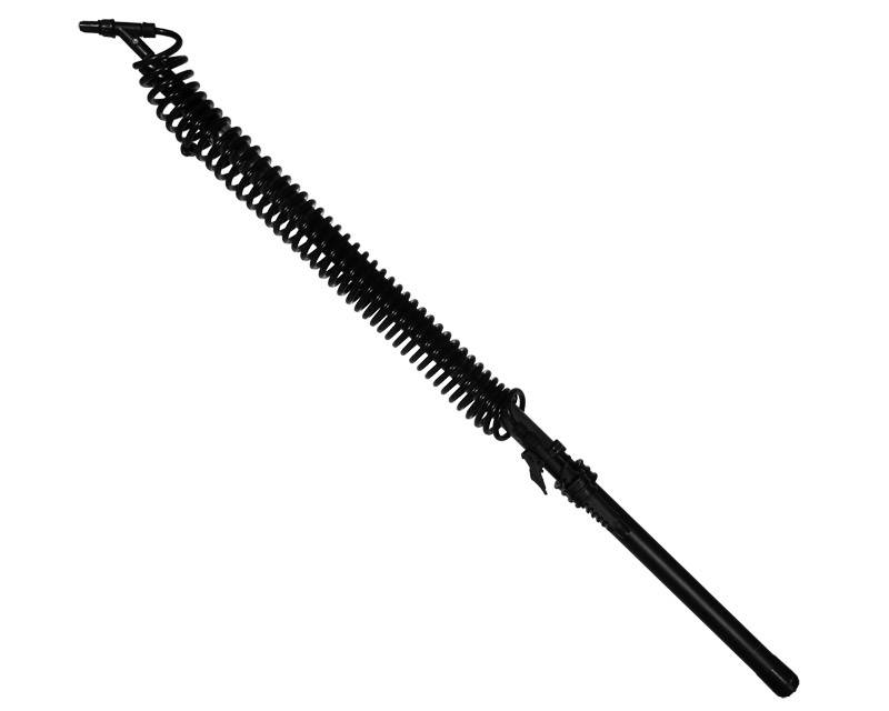 Robust teleskoplanse i let glasfiber med udvendig flexslange, ventilhåndtag og justerbare dyser.