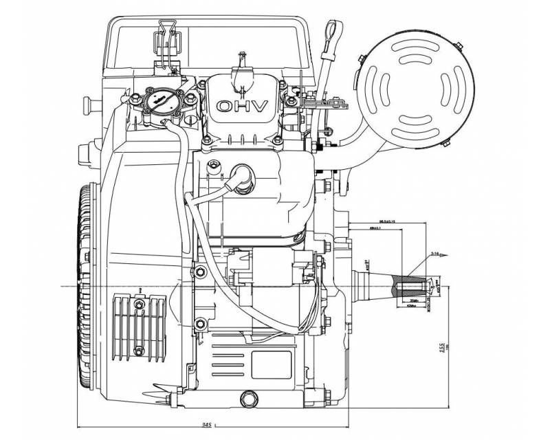 2-cylindret benzinmotor med elstart og vandret aksel. Denne motor er udstyret med 1" aksel og har desuden ekstra kraftig ladespole på 260 watt / 21 Ah. Som det ses på billedet er udstødning, elstart og nøglestart inkluderet i prisen, dog følger der ikke batteri og tank med. Motoren er oliekølet.