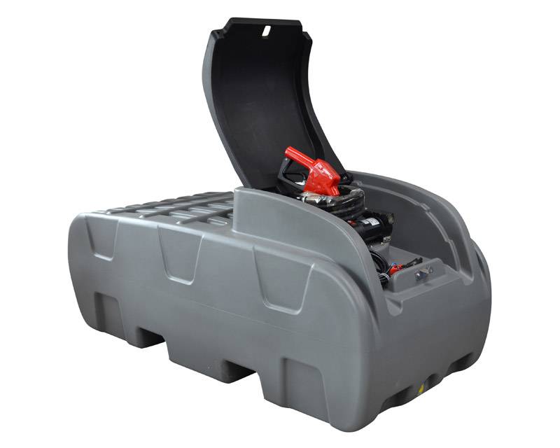 Solid 500 liters dieseltank i hård uv-bestandigt plastik. Leveres komplet med 12 volt pumpe, kabler og slange med automathåndtag. Desuden er tanken udformet, så den kan flyttes med gaffeltruck eller lign.
