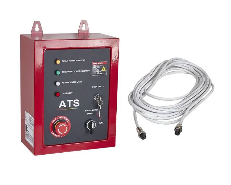 Tilkøb til vare nr. 8009462 - 400 volt / 7.000 watt dieselgenerator. ATS (Automatic Transfer Switch) boksen sammenkobles med generatoren og styrer den automatiske opstart i tilfælde af strømsvigt. Systemet har desuden også power-off funktion, når strømmen fra elnettet kommer tilbage.
