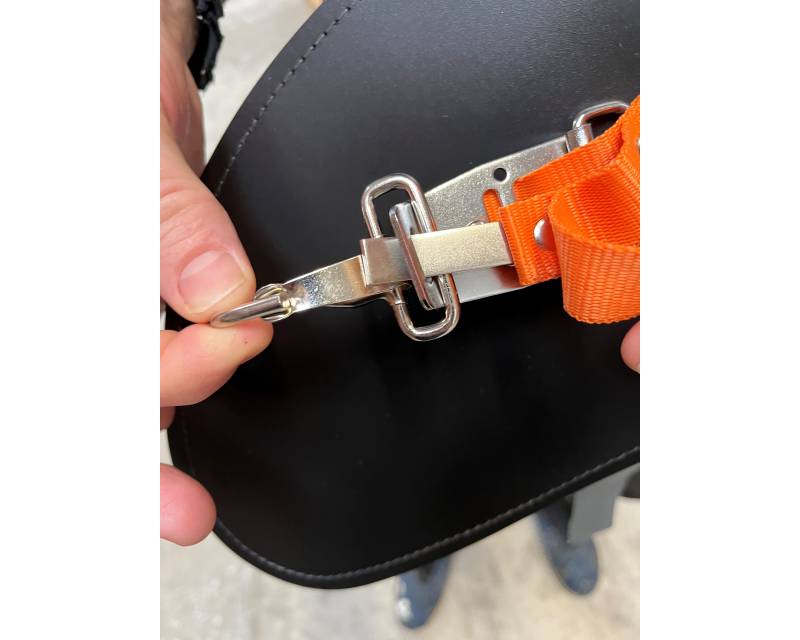 H-sele i meget høj kvalitet. Alle remme er polstrede og kan reguleres, så man får god pasform uanset størrelse. H-selen bliver stabiliseret vha. en kraftig plastikplade, som holdes fri af ryggen vha. polstring.