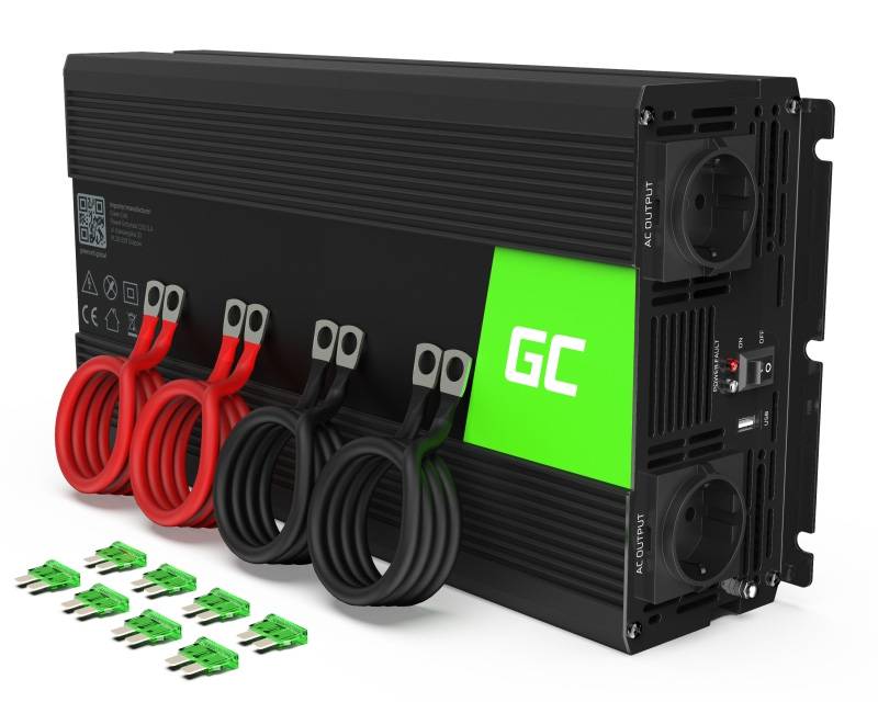 Green Cell 2000 watts inverter med ren sinus kurve som man kender det fra en alm. stikkontakt. Kan bruge til både værktøj, maskiner og elektronisk udstyr. Nem at bruge: Tilslut 12 volt batteri og du får 230 volt strøm ud på den anden side.