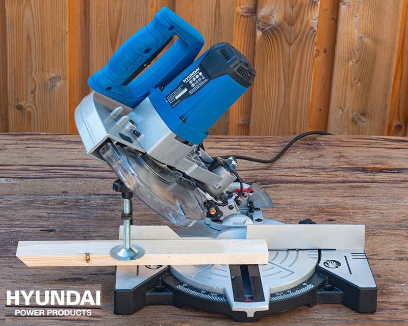 Hyundai 210 mm kap/geringssav med laser og 48 tands klinge. Kan save op til 120 mm i længden og 60 mm i bredden. Maskinen har automatisk afskærmning omkring klingen leveres med støvpose for nem udsugning.