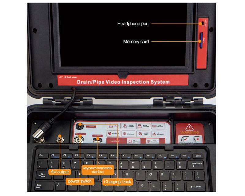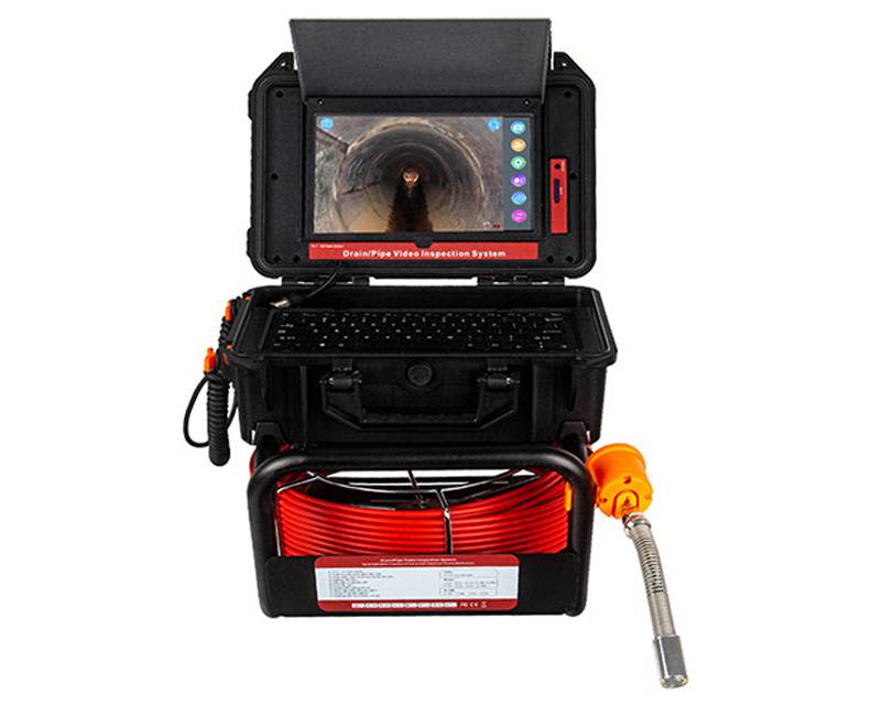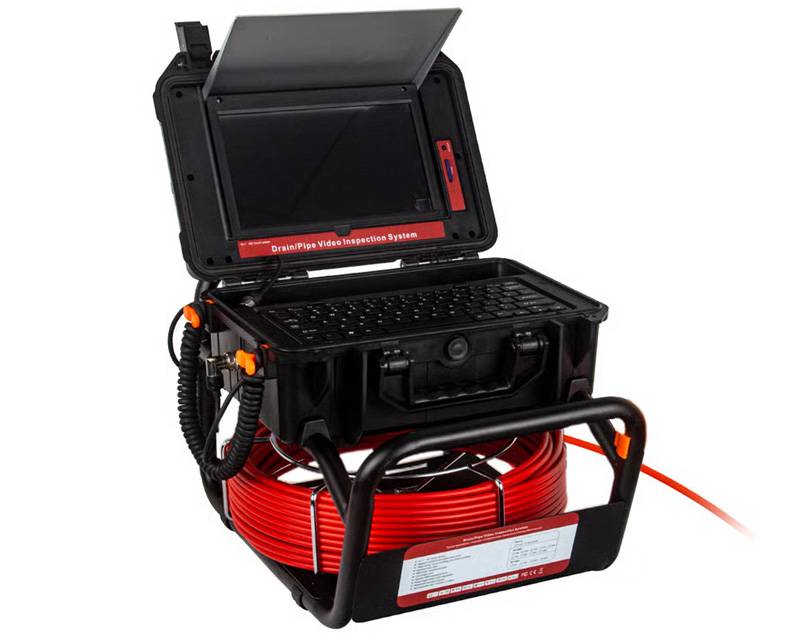 All-in-one løsning med kloak-tv med stor 10 tommer touch skærm og 20 meter kabel, søger med eget display og indbygget optager.