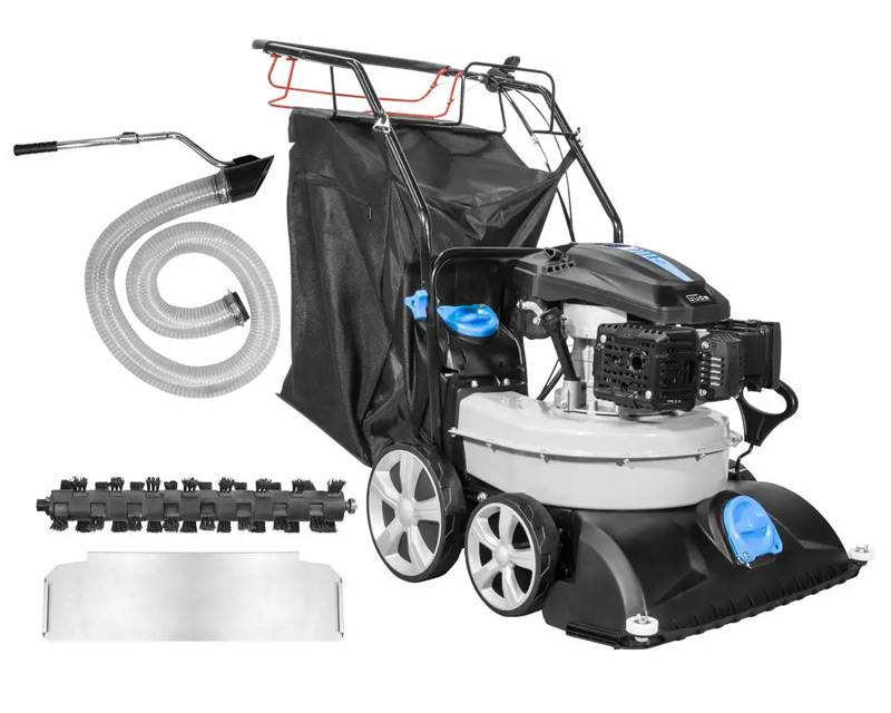 Bemærk også den store 4-taktsmotor og 150 liters pose. Desuden kan løvsugeren prale med fremdrift på baghjul høj sugeevne (18 m³/minut) samt en lufthastighed på op til 270 km/t.