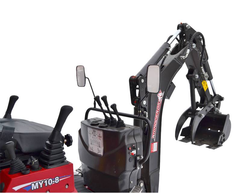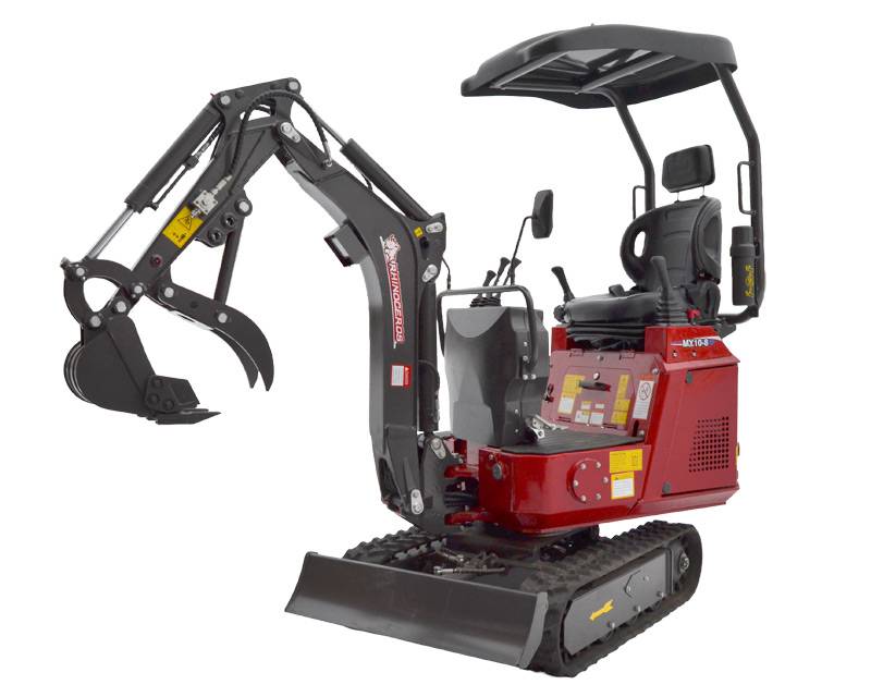 Ny version af vores populære minigravere - denne gang med Briggs & Stratton benzinmotor. Hertil kommer larvebånd, drejelig arm, dozerblad, fast tand og 35 cm skovl. Bemærk også joysticks som er placeret ved siden af sædet. Minigraveren har naturligvis også tag/styrtbøjle og ekstra hydraulik udtag på gravearm til fx pælebor eller tiltskovl. Andre skovle kan desuden tilkøbes.