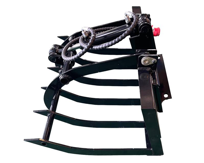 Hydraulisk skovklo/-tang til vores Tiny-Ox Minilæsser. Kloen har en bredde på 100 cm og er opbygget næsten som et bur med 4/5 tænder over/under.