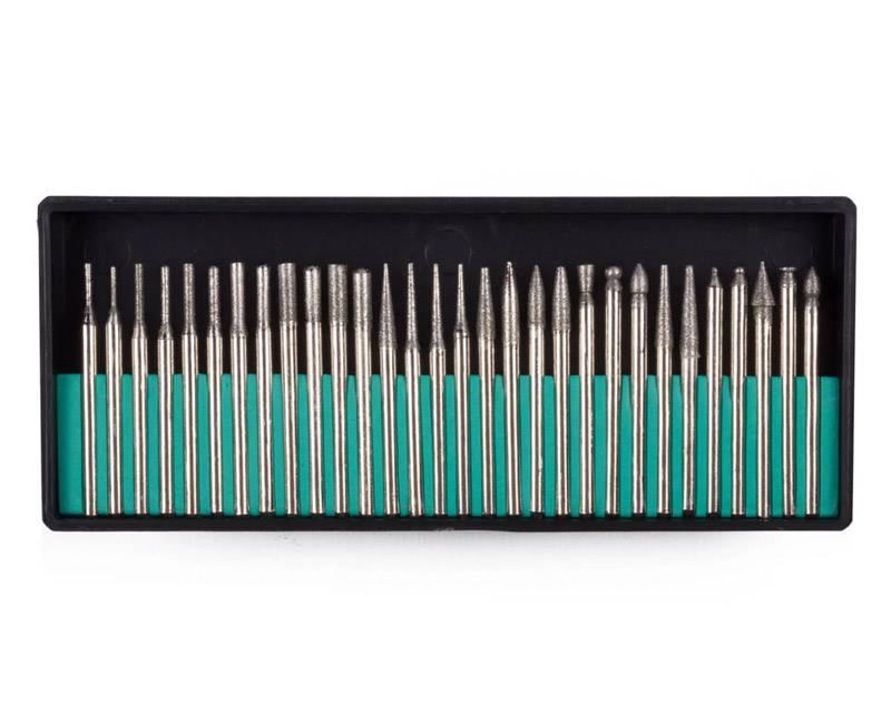 Alt hvad hjertet kan begære i diamantslibere i alle former. Brug fx til slibning eller gravering på glas. Indeholder 30 stk. som bliver leveret i æske med låg.