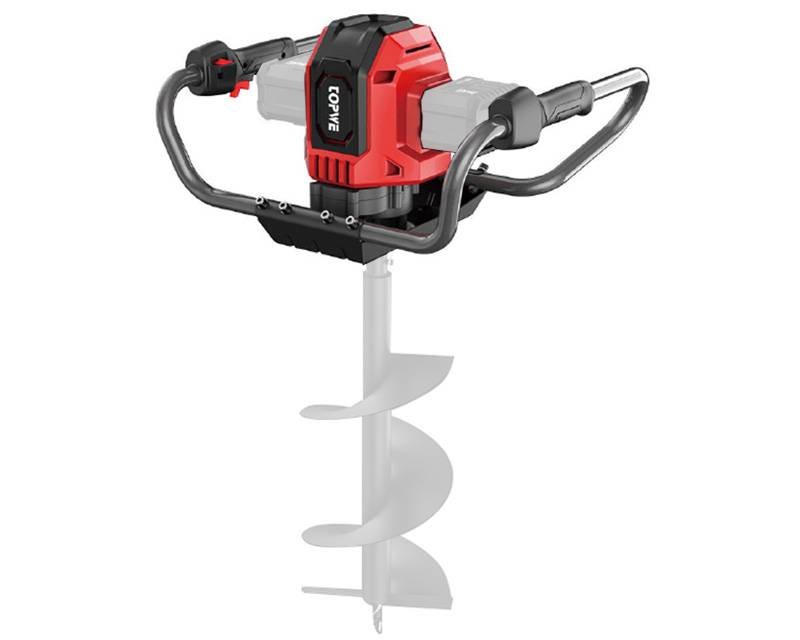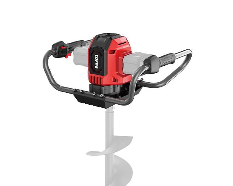 Kraftig batteridrevet pælebor med kulfri gearmotor, som bliver drevet af 2 stk. 20 volt 4 Ah LI-ION batterier, hvor man kan anvende bor helt op til Ø250 mm.