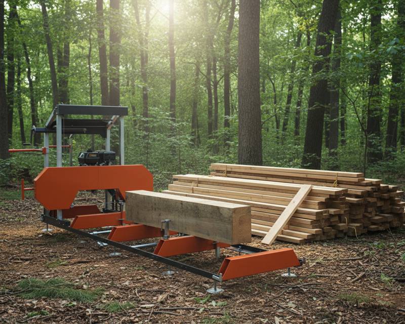 Benzindrevet savværk med 4 meter spor og manuel fremføring af sav. Denne maskine er drevet af en 9 hk Lifan benzinmotor og gør det muligt at bruge savværket mange forskellige steder. Mulighed for at save stammer med en diameter op til 66 cm.