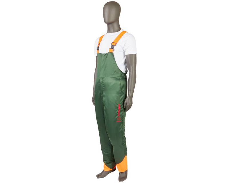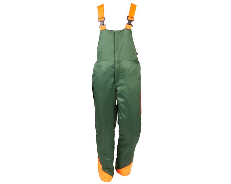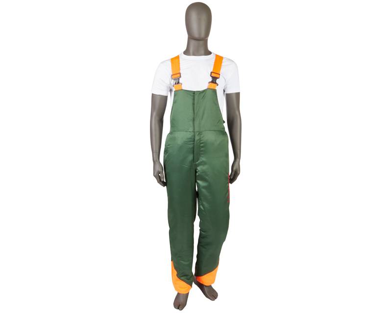 Disse skærebukser er konstrueret med 10-lag stof, som - hvis uheldet skulle være ude - vikler kæden ind og bremser denne og begrænser skaden. Sikkerhedsbukserne er desuden forsynet med stropper og er naturligvis i højeste godkendt kvalitet: Klasse 1.
