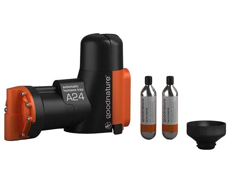 Miljøvenlig rottefælde til giftfri skadedyrsbekæmpelse. Fælden har gennemsigtig top, hvilket sammen med lokkemidlet gør rotter/mus nysgerrige. Når musen stikket hovedet op i fælden aktiveres udløserstangen, der affyrer stemplet, som dræber gnaveren på stedet. Rottefælden lader selv og gaspatronen har kapacitet til 24 skud.