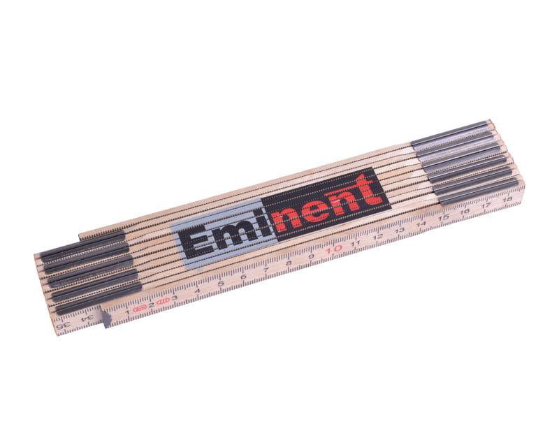 Klassisk 2 meter træ tommestok med Eminent logo på den ene side. Produceret i birketræ med 12 led, hvilket betyder at den nemt kan være i lomme.