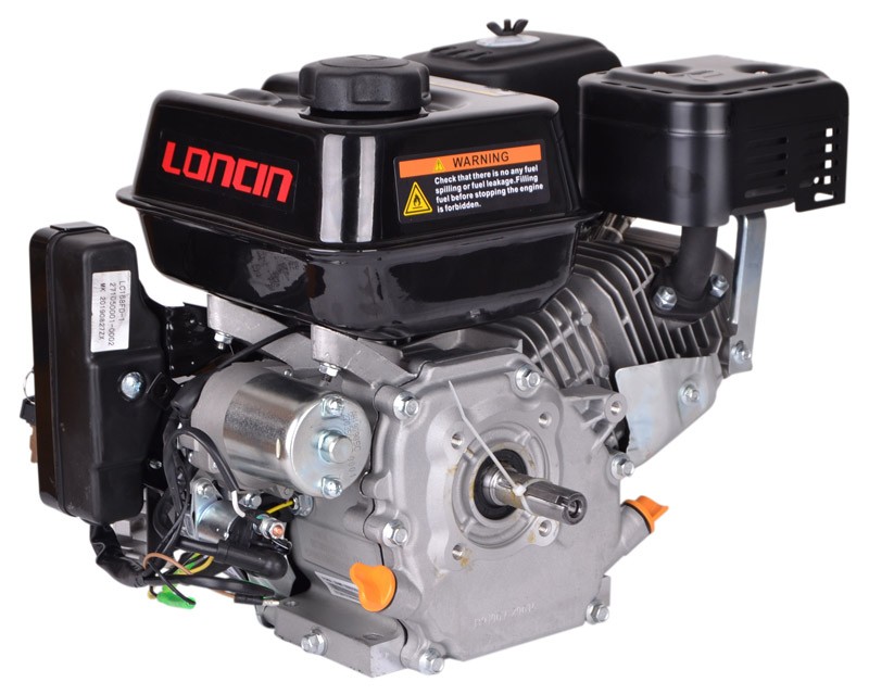 7 hk Loncin Benzinmotor med 20 mm aksel og elstart (og rekylstart som vist på billederne). Har samme ydre mål som 6,5 hk motorer og blot lidt større boring og lidt flere kræfter. Desuden opfylder denne motor de nye EU-krav (Euro5) som er gældende fra 2020.