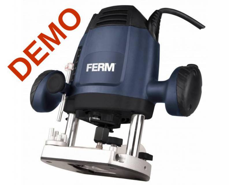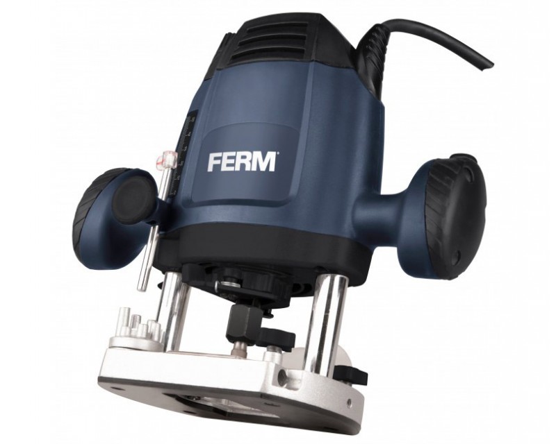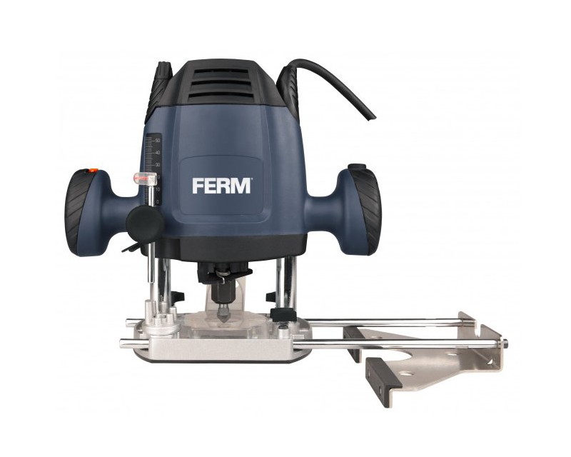 FERM Overfræser i sæt med 3 fræsejern, studs til støvudsugning samt det viste land. En god billig overfræser med variable hastighed.