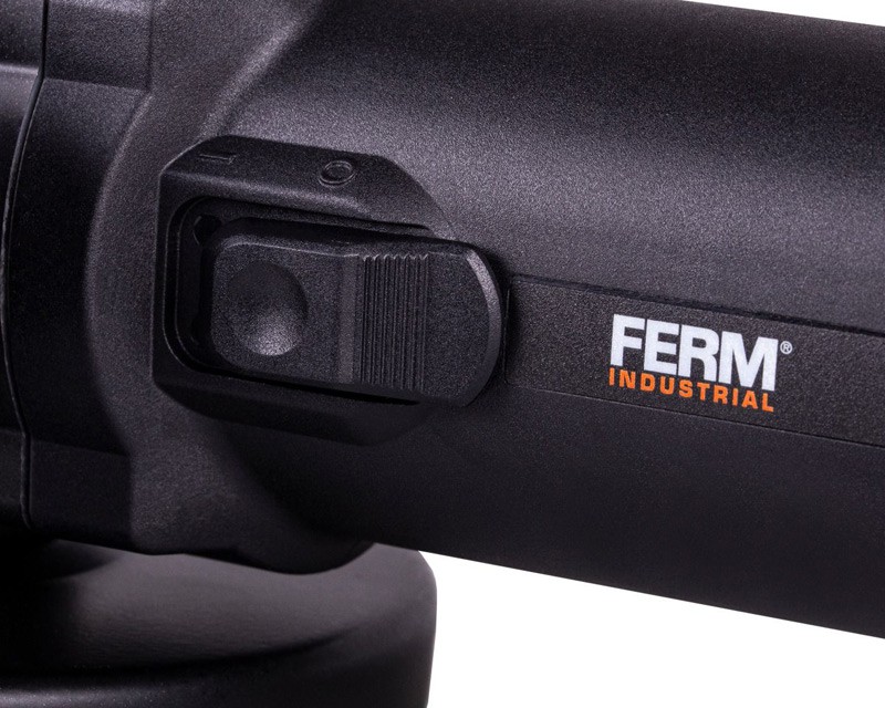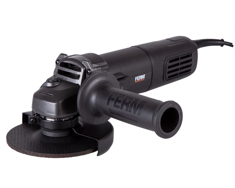 Professionel vinkelsliber fra FERM med 950 watt motor. Inkl. skærm og sidehåndtag, som kan placeres i både højre og venstre side. Desuden spindellås og værktøj til skift af klinger/skiver.